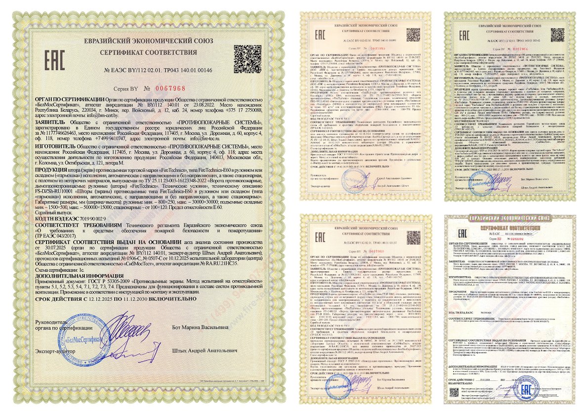 //Сертификаты испытаний на противопожарные шторы и ворота ТР ТС